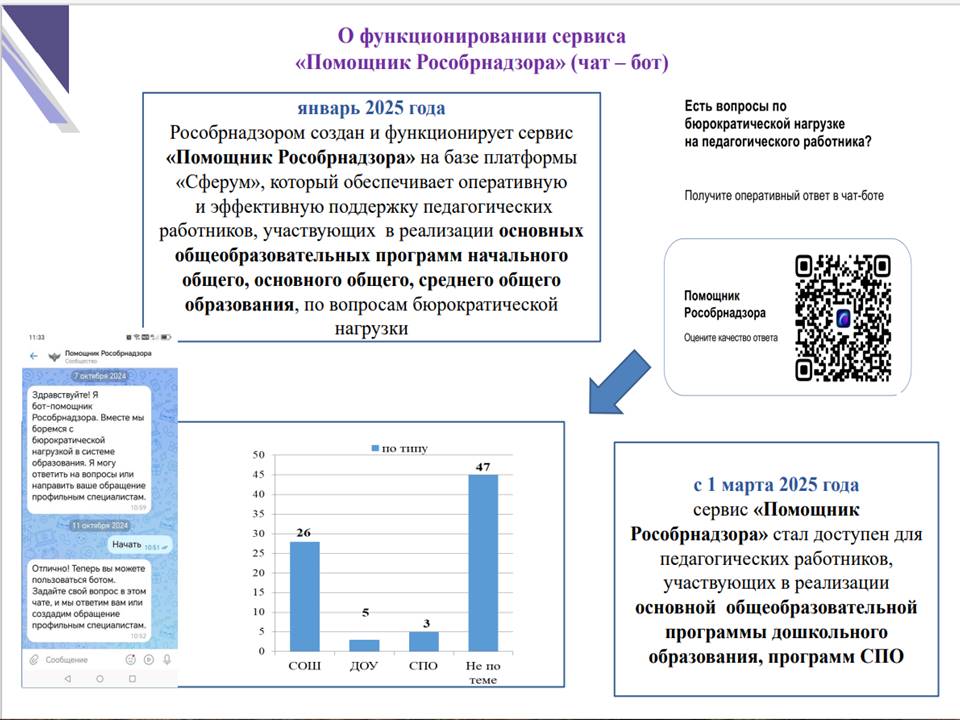 Сервис «Помощник Рособрнадзора» по вопросам снижения бюрократической нагрузки на педагогических работников